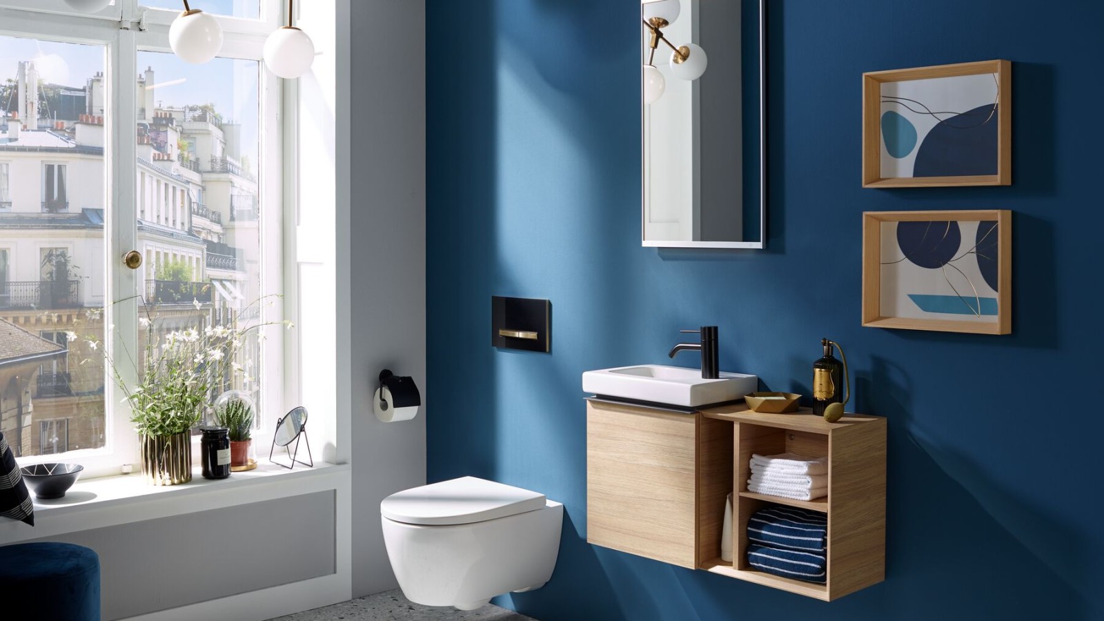 Lave-mains et meubles sous lave-mains des lignes Geberit ONE, Citterio, Xeno², Acanto, iCon, Smyle Il est possible de mixer les lignes et d’intégrer des produits complémentaires dans la composition (module de filtration des odeurs Geberit DuoFresh, miroir, meuble d’habillage Geberit Lineo, meubles latéraux, accessoires).