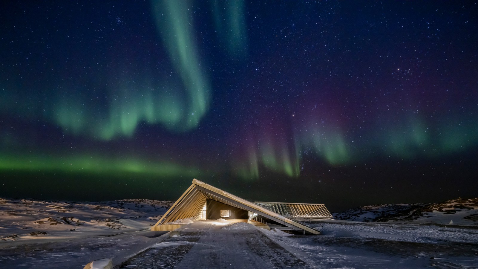 Imaginé par l’architecte Dorte Mandrup, l’Icefjord Centre d’Ilulissat reflète la vulnérabilité de cette nature sauvage. Érigé sur un haut plateau à la périphérie de la troisième ville du Groenland, le centre offre à ses visiteurs une vue spectaculaire sur la baie et ses icebergs à la dérive. Avec sa forme d’aile, il se fond parfaitement dans ce paysage balayé par les vents et la neige.