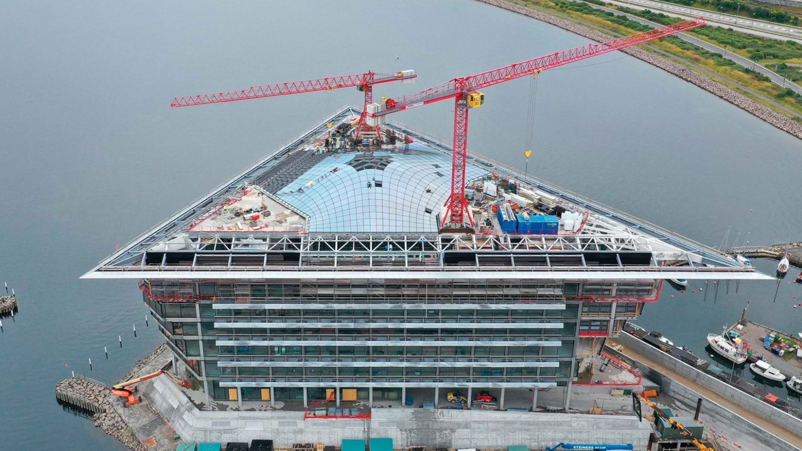 Un îlot flottant tout en légèreté : le nouveau siège de la société pharmaceutique Ferring Pharmaceuticals à Kastrup, au Danemark.